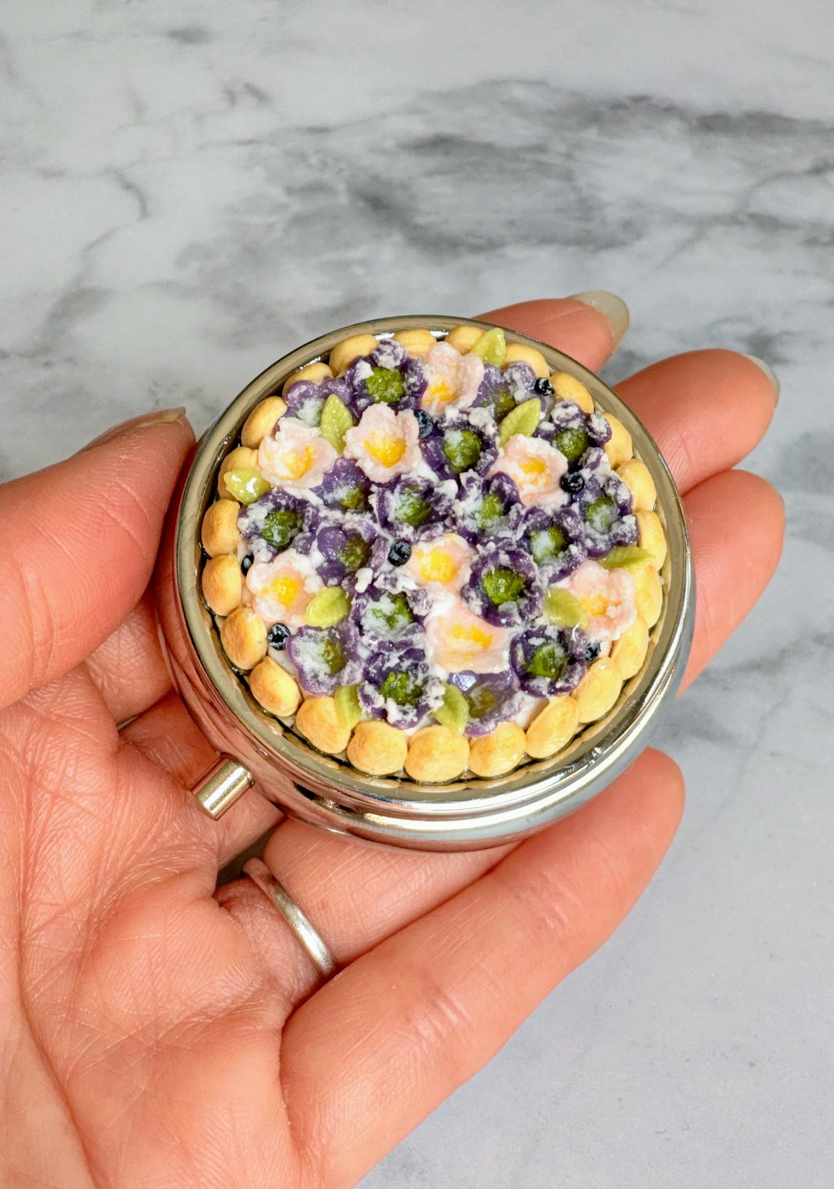 すみれの砂糖漬けのシャルロットケーキをイメージした小物ケースです。