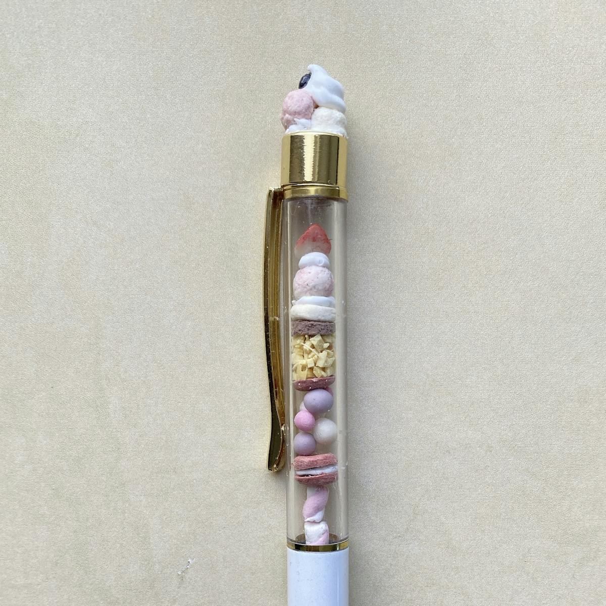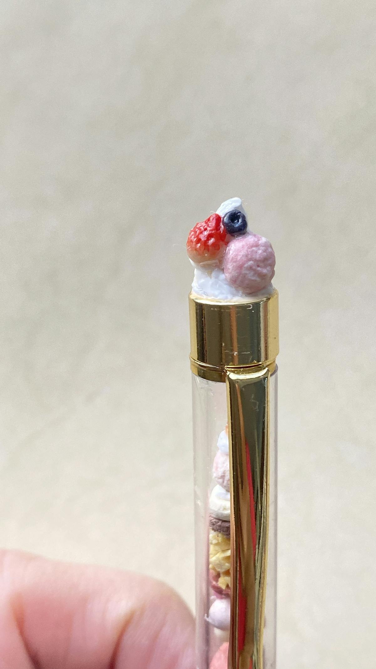 樹脂粘土で作ったフルーツ、スイーツ等をボールペンに詰めました。