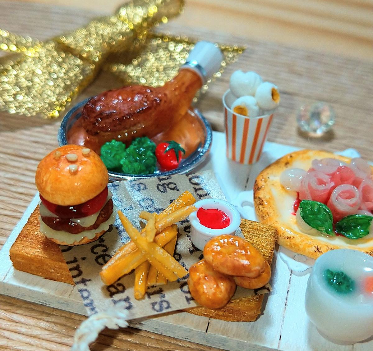 プチトマトとブロッコリーはお皿に、ポテトフライとチキンナゲットはまとめて接着しております。