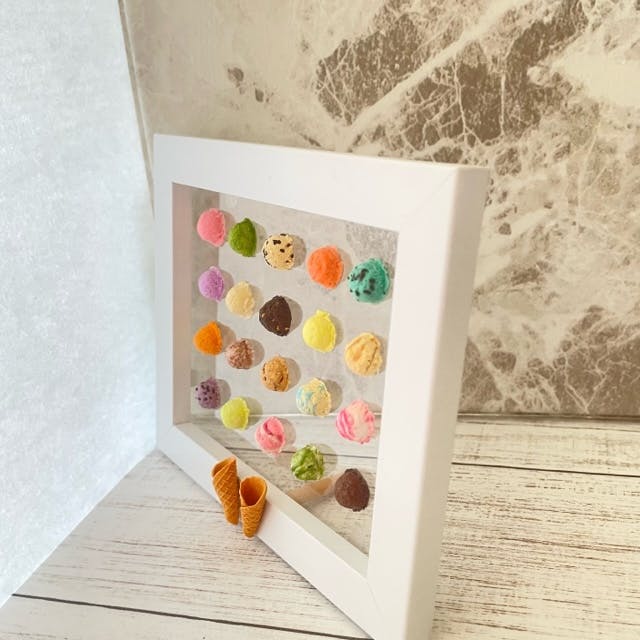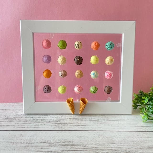 樹脂粘土で作った20種類のアイスクリーム。すべて接着済です。