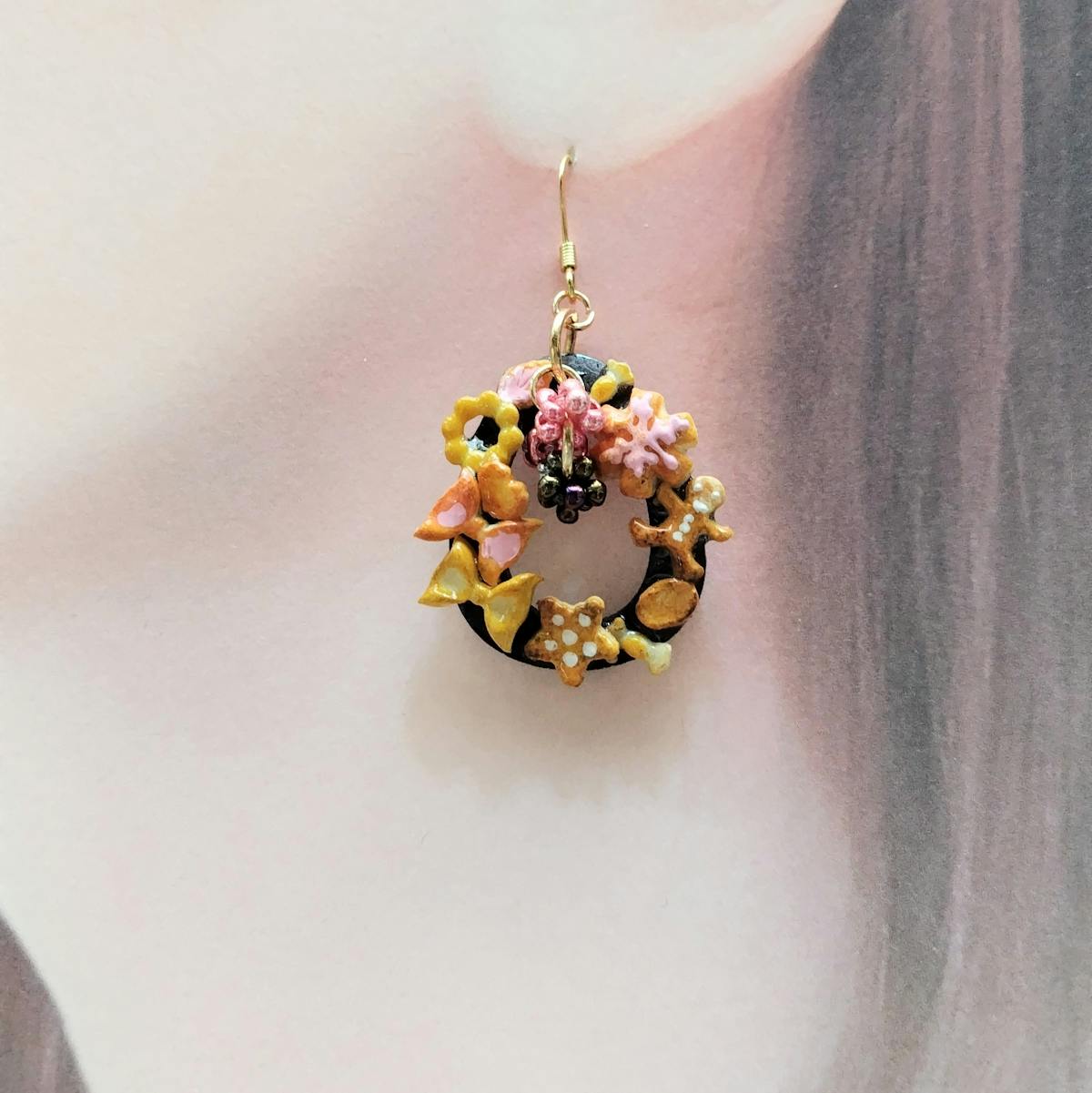 (ピアス金具部分はステンレス、リース土台はウッドです)