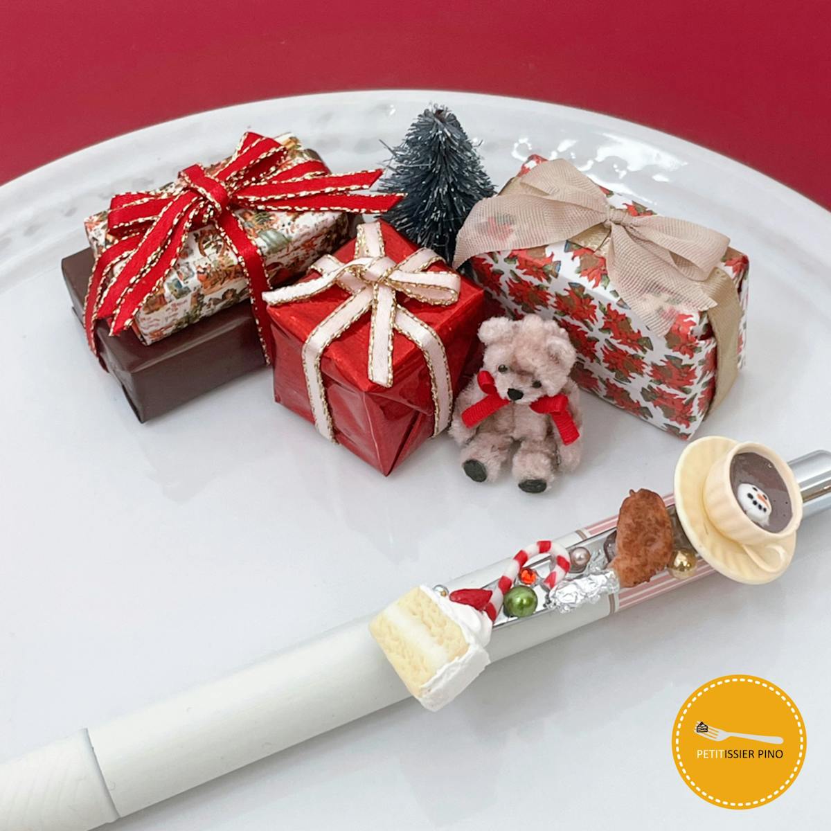 上からマシュマロココア、チキン、キャンディケーン、ショートケーキと並べてみました。