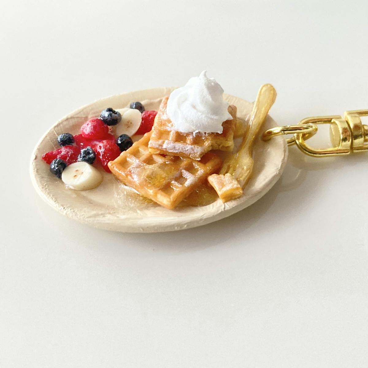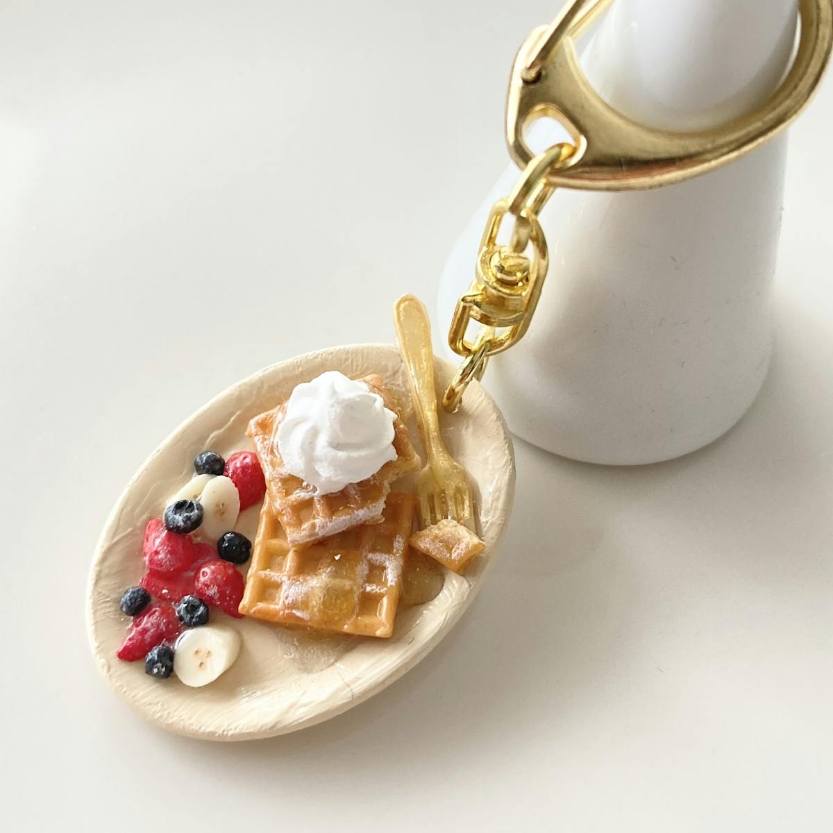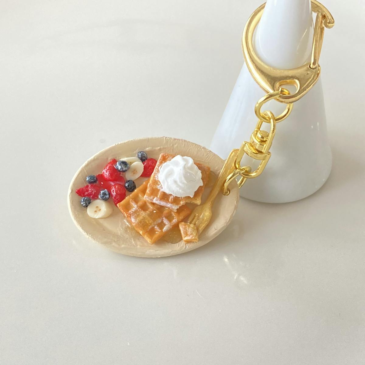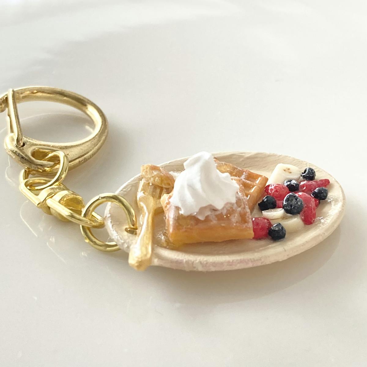 カフェで出てくるようなワッフルプレートをミニチュアキーホルダーにしてみました✨
