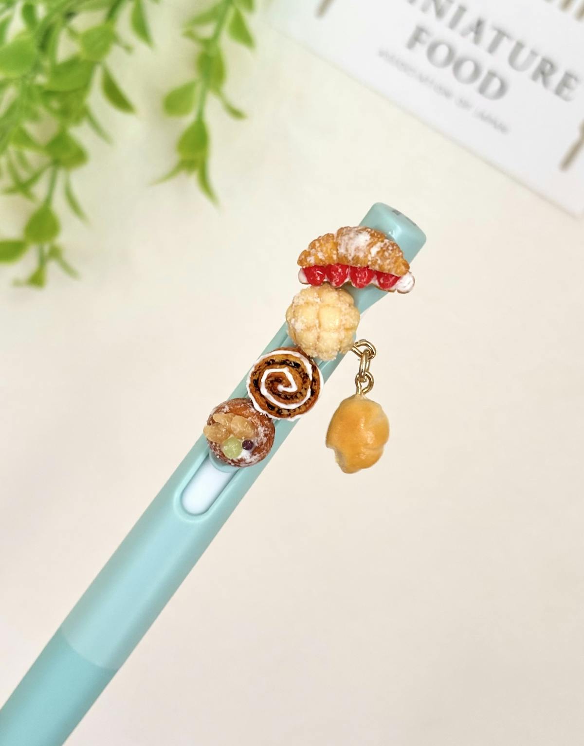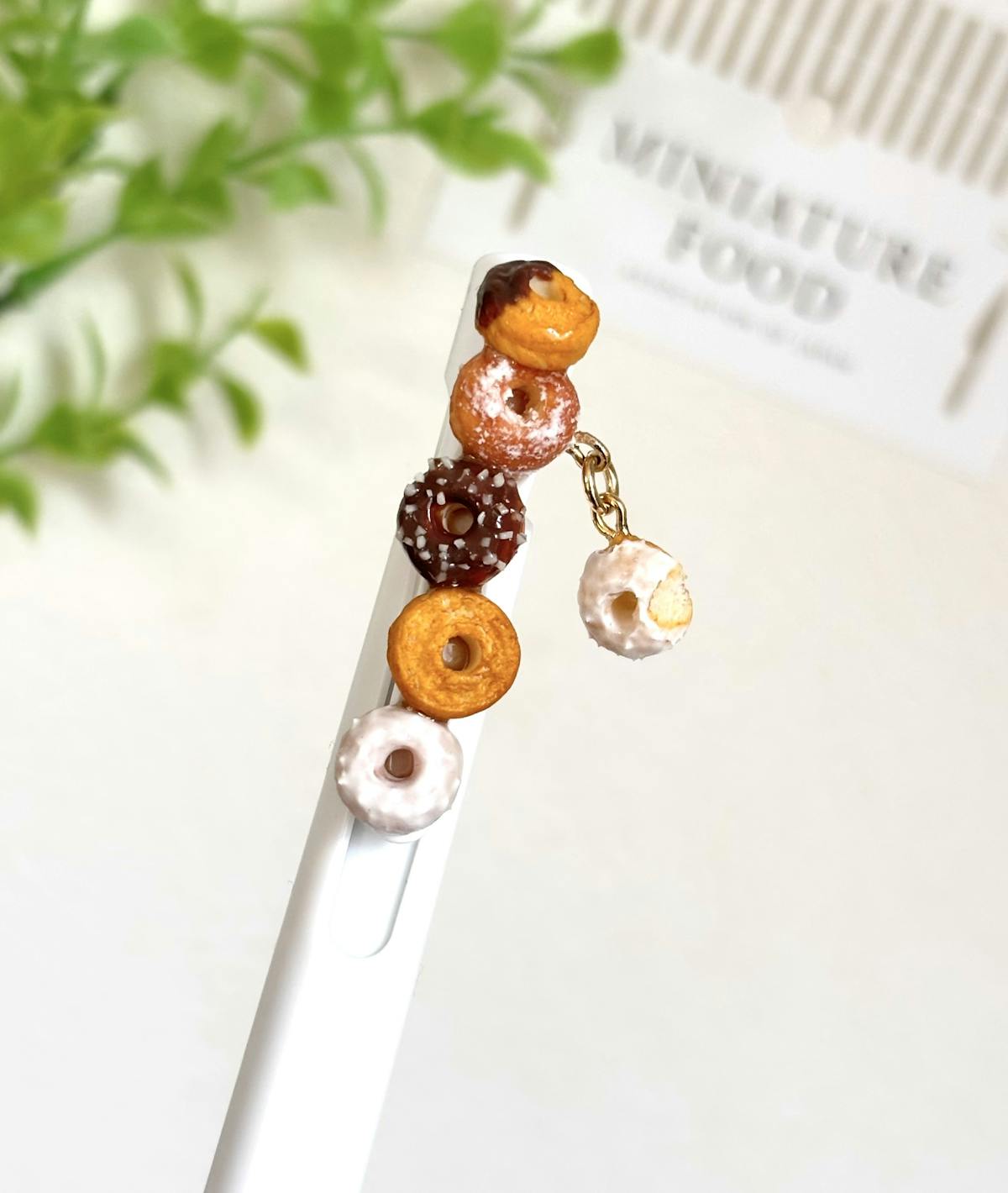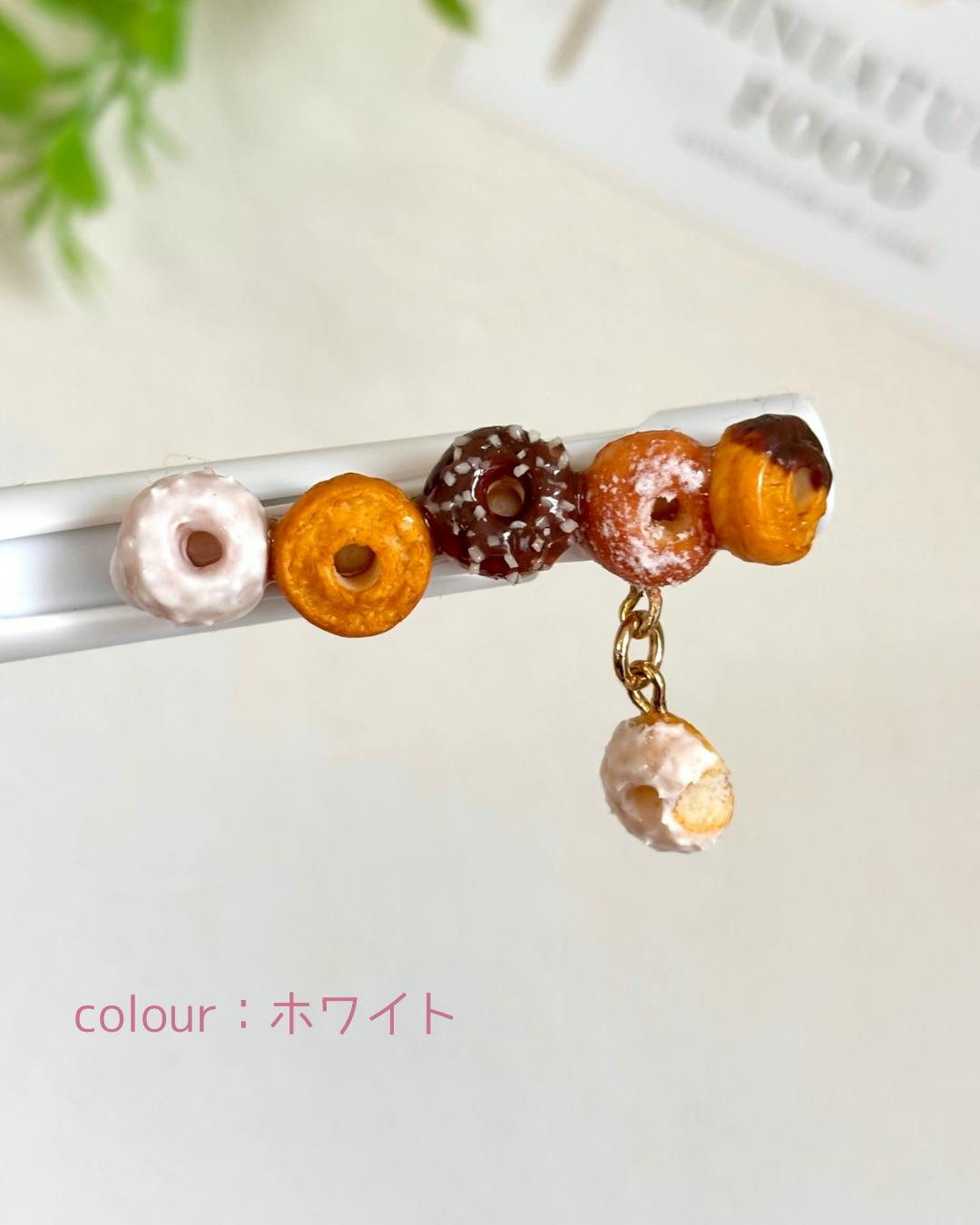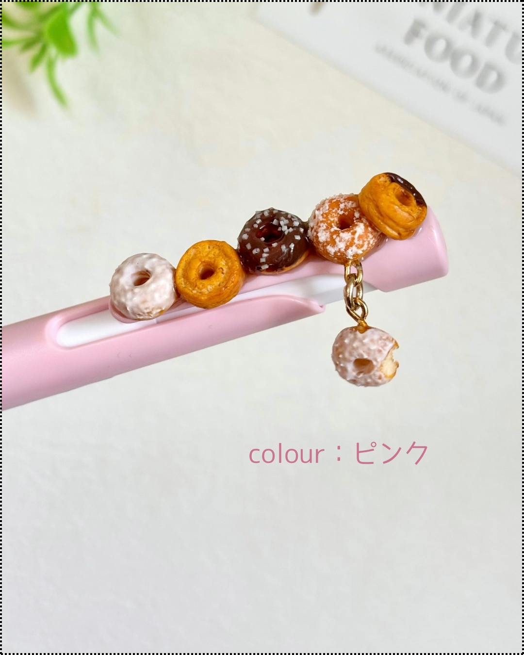 樹脂粘土で作ったドーナツをクリップ部分に接着しています。