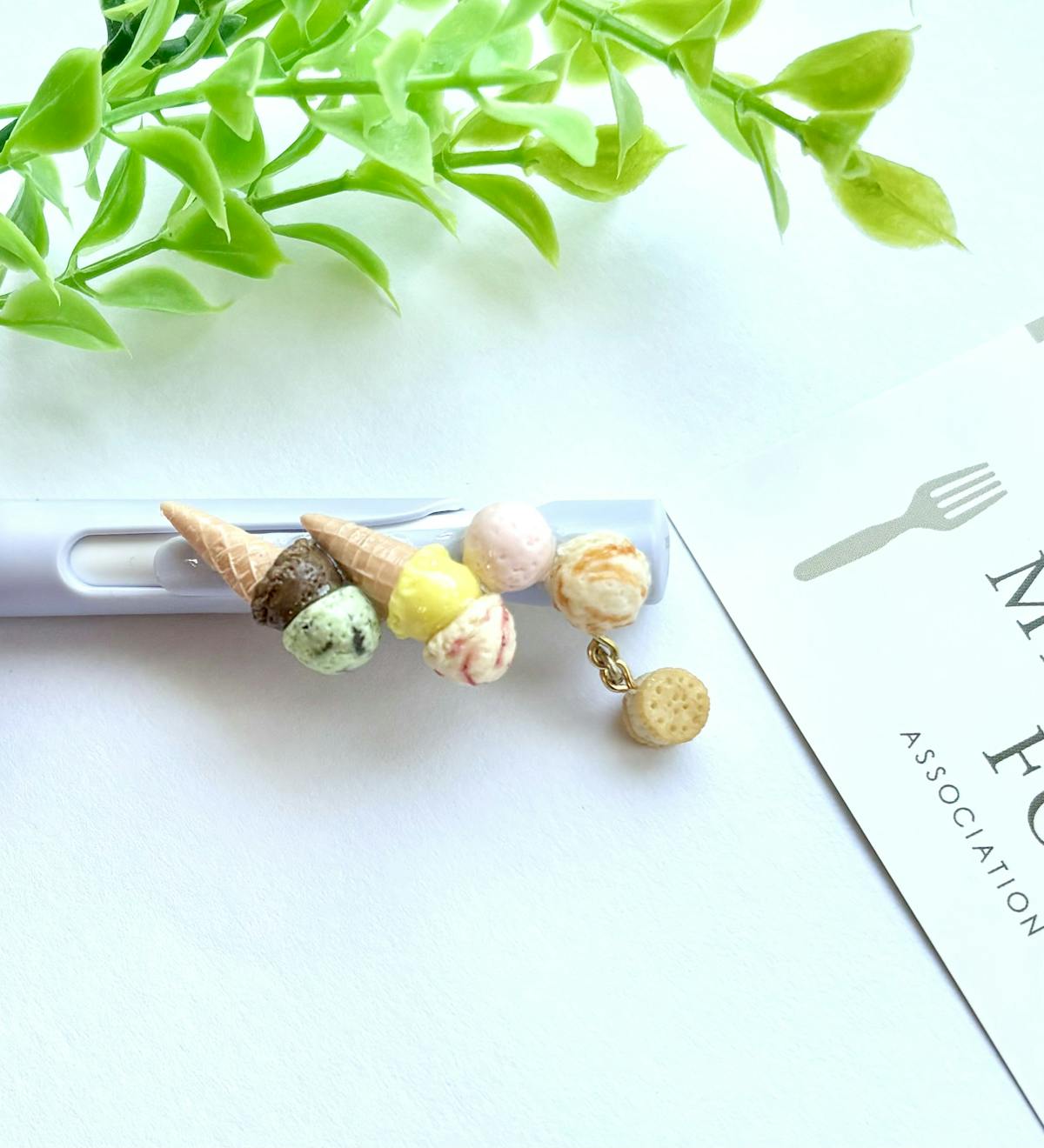 🍨樹脂粘土で作ったアイスクリームをクリップ部分に接着しています。《持ち手:パープル 》