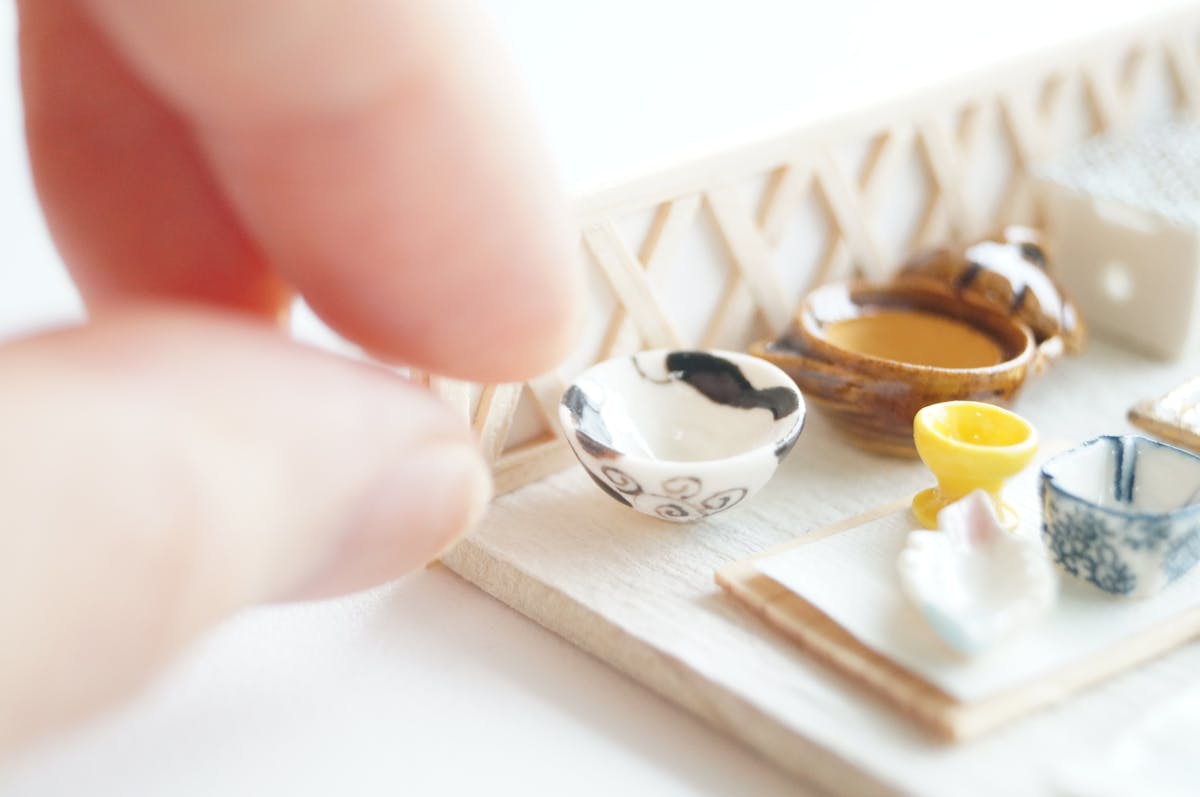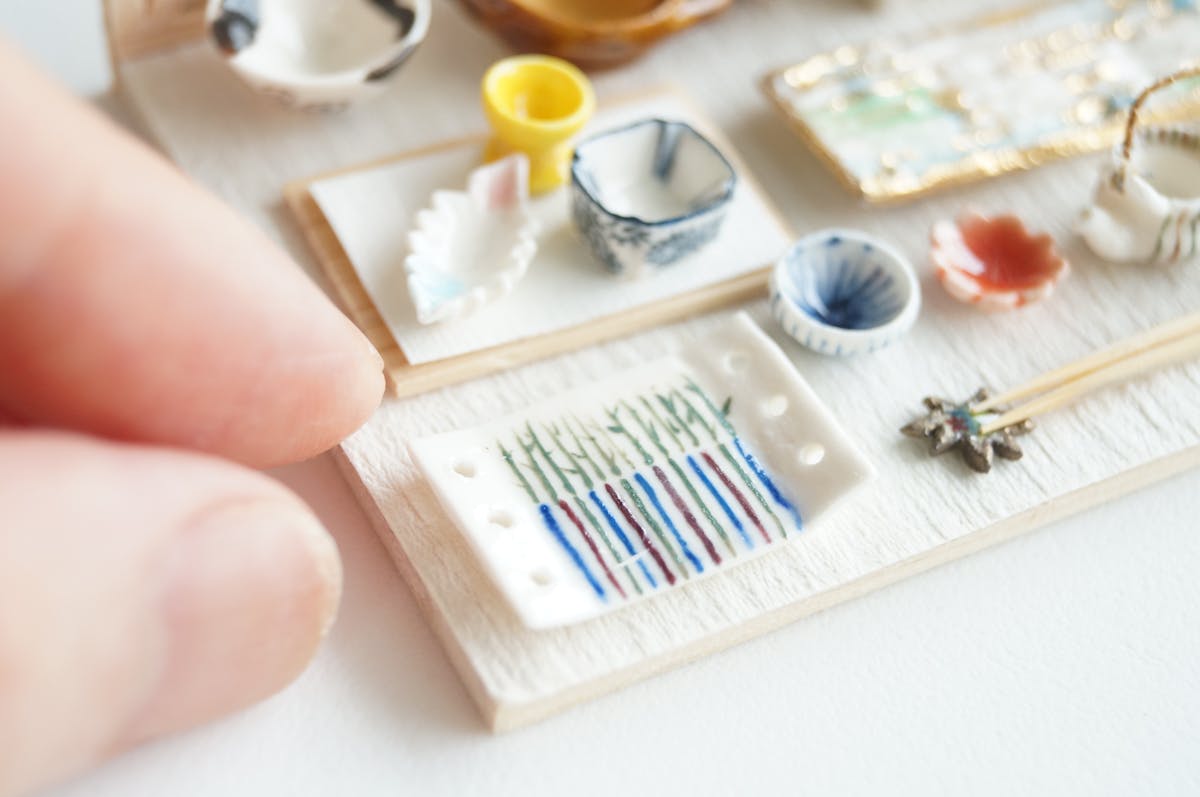 ミニチュア陶芸食器とは、本物の焼き物と同じく、素焼き、本焼きを経て作成したミニチュアサイズの食器になります。