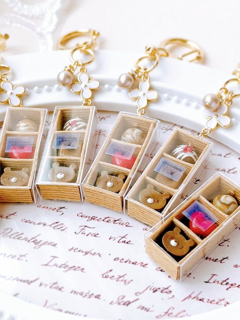 1cmほどの小さなチョコを3粒、ギュッとパッケージしたキーホルダーです🍫