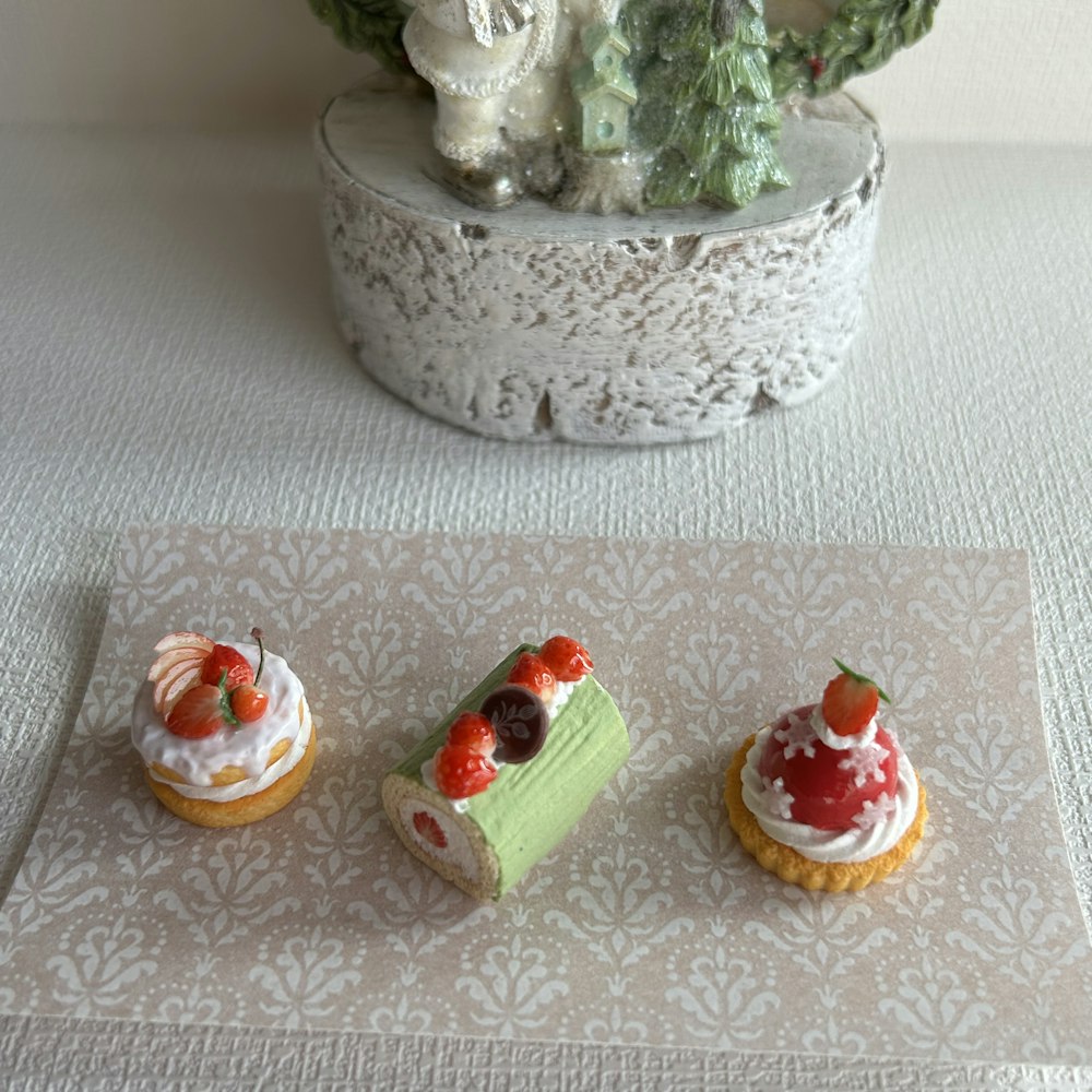クリスマスカラーをイメージしてケーキ3種でマグネットを作りました。