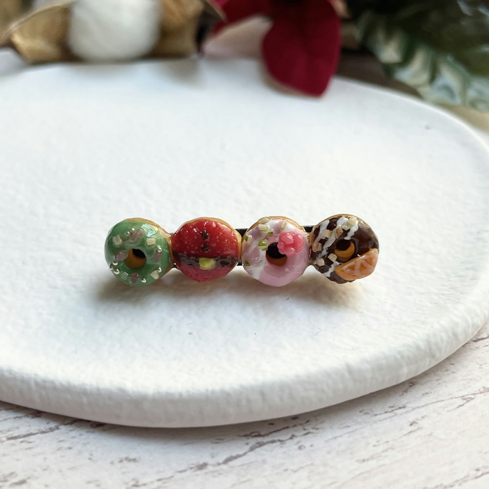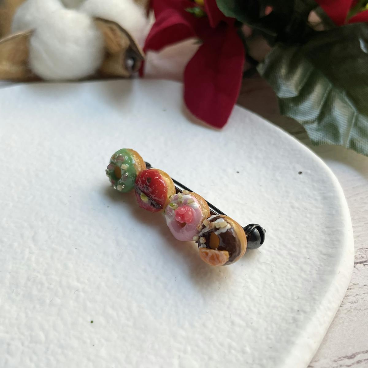 サンタやクリスマスリースをイメージしたドーナツで仕上げたブローチです