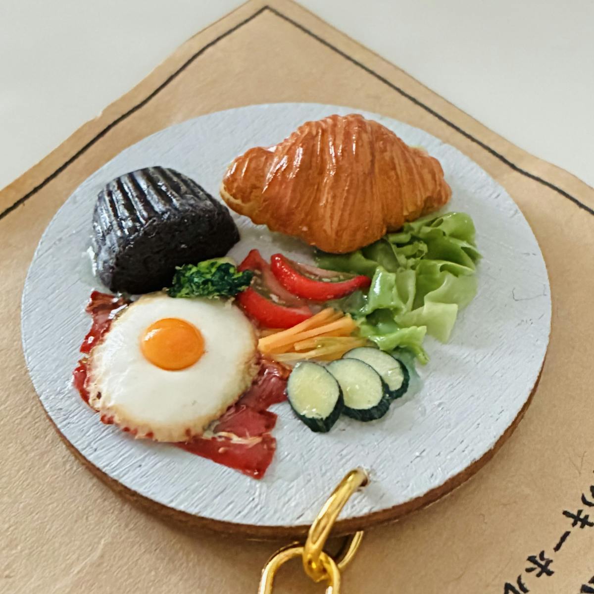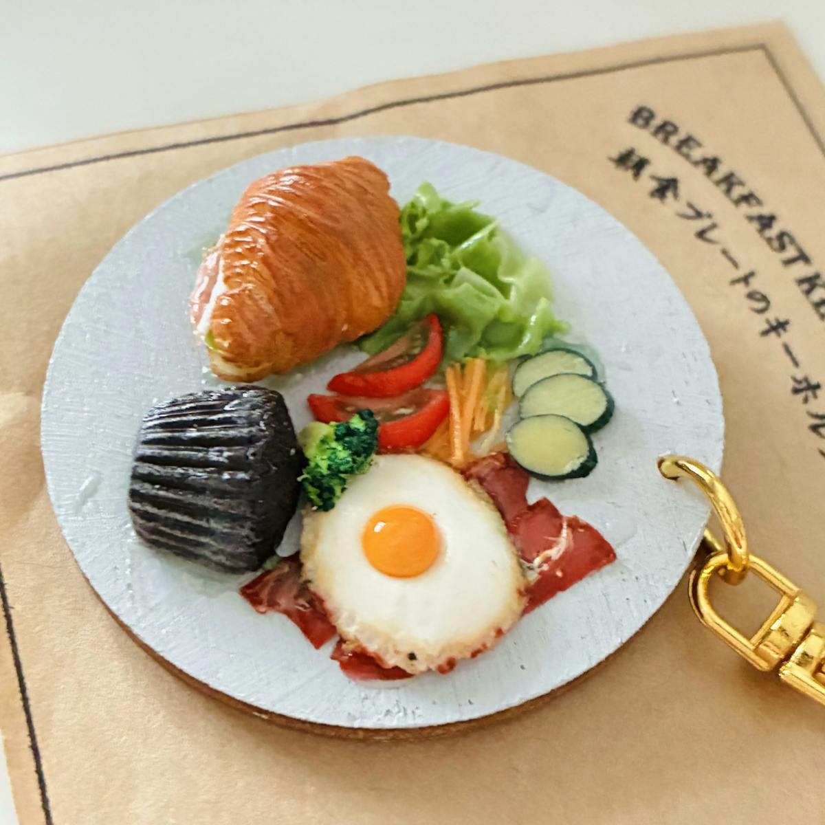 ●サラダ、ベーコン、目玉焼き、クロワッサンサンド、チョコマフィン