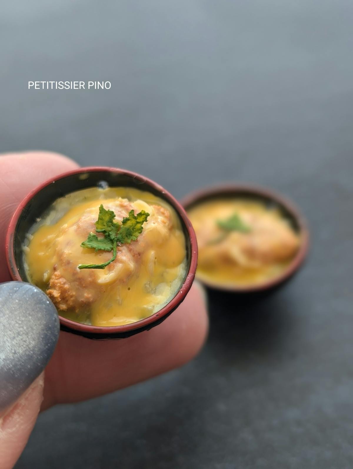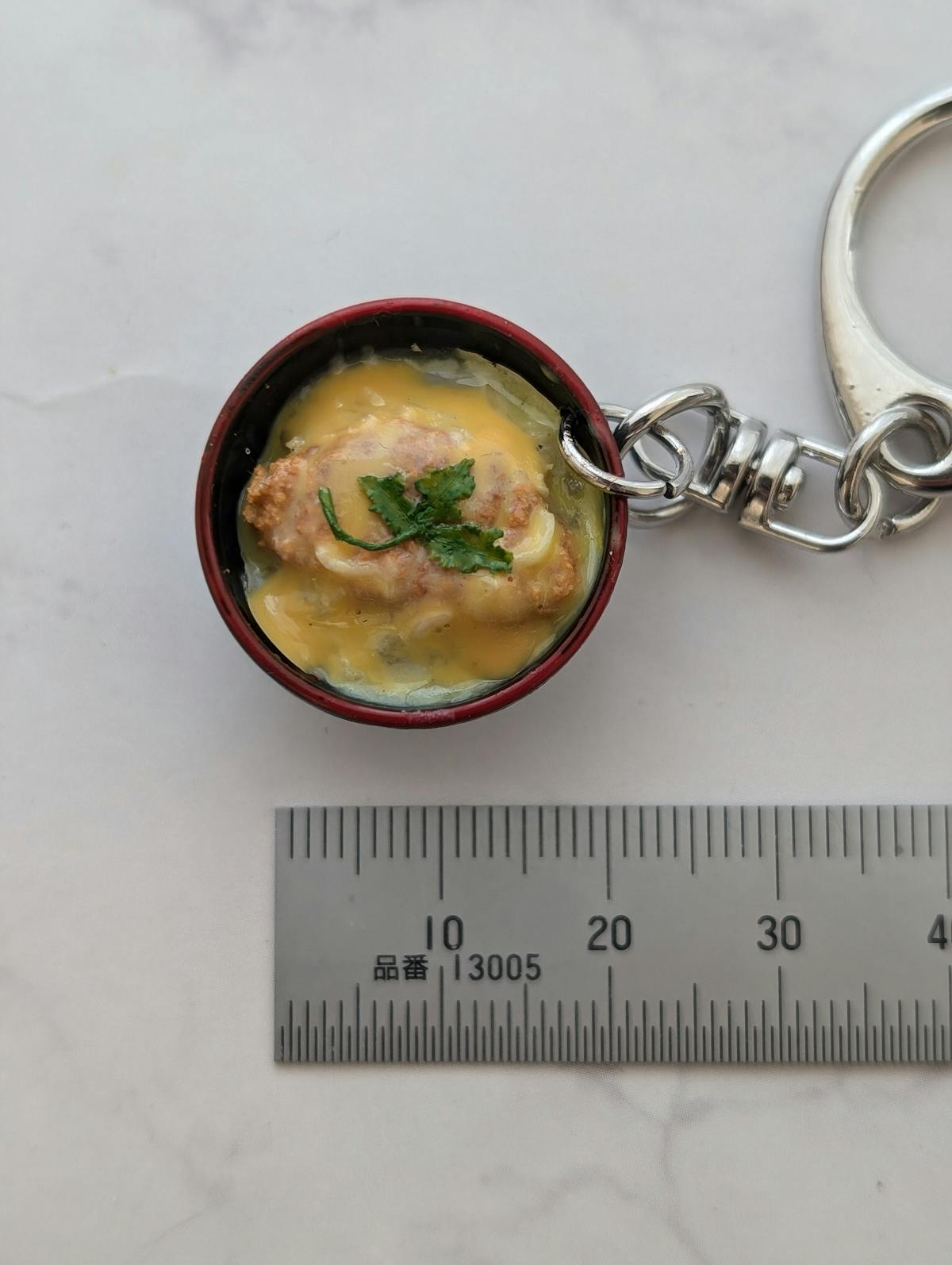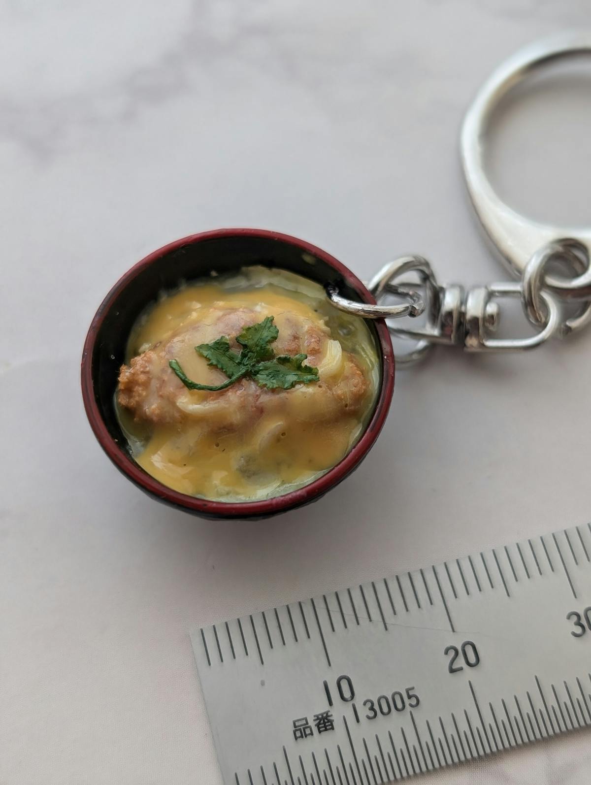 シンプルなミニチュアのカツ丼キーホルダーです。