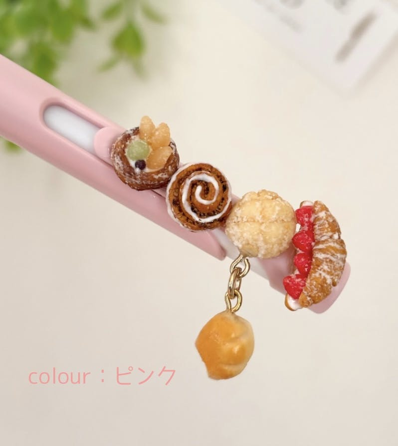 樹脂粘土で作ったパンをクリップ部分に接着しています。
