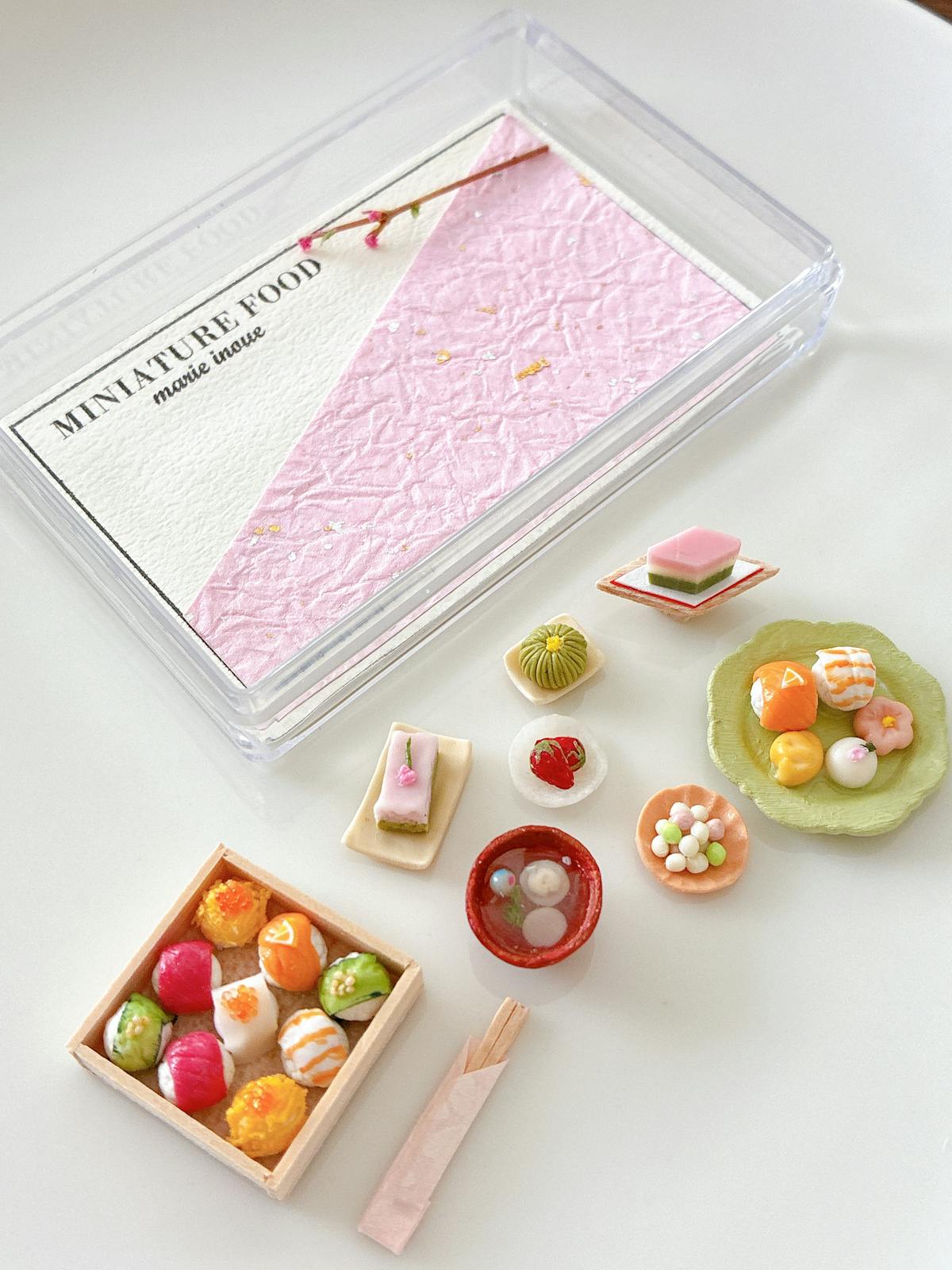 菱餅、お皿にのったお寿司と和菓子、枝