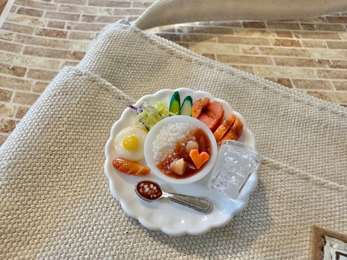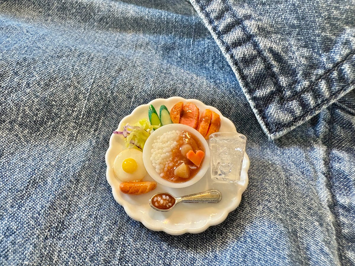 沢山のトッピングを添えたカレーライスをブローチにしてみました✨